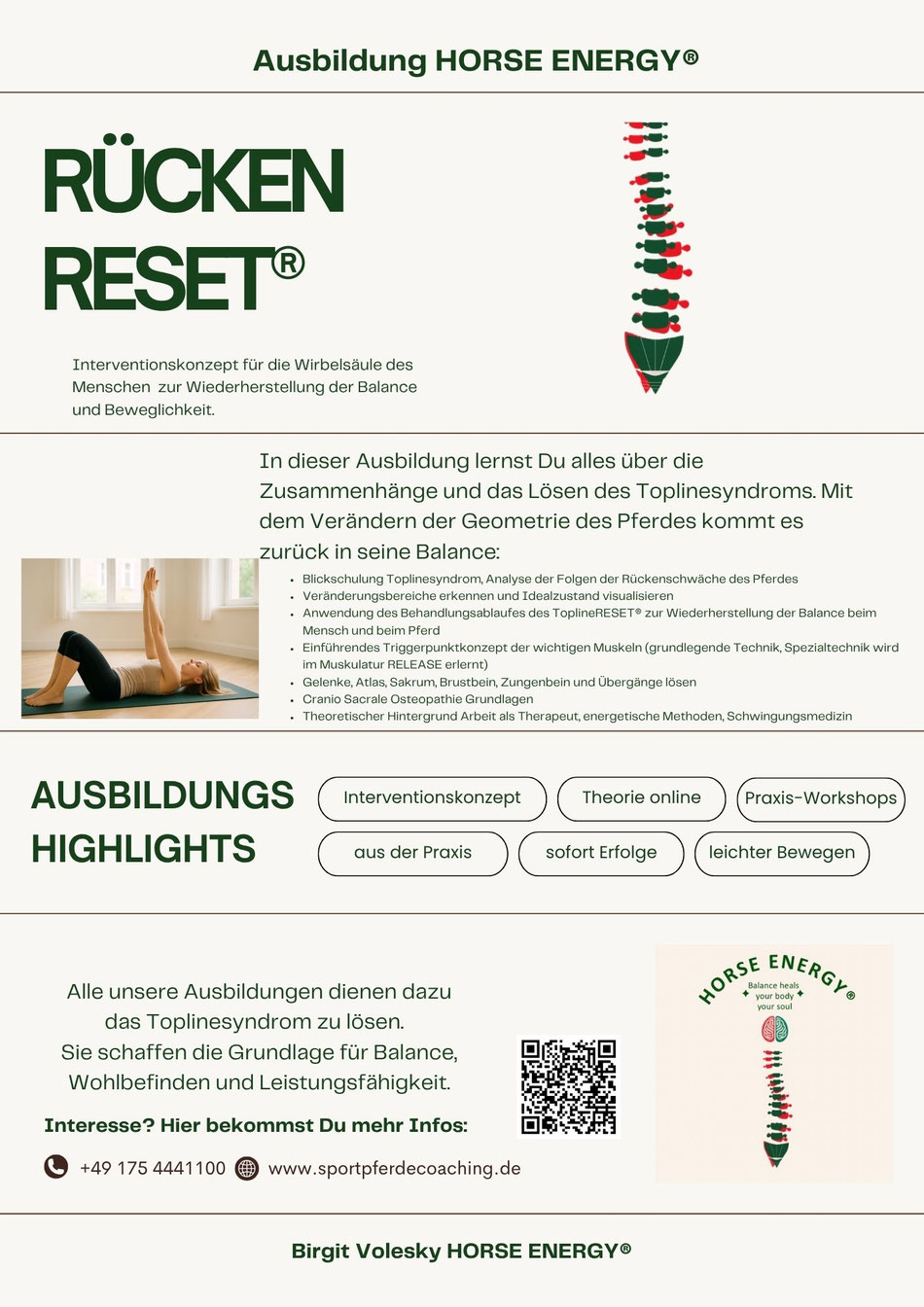 Auf Basis der Erkenntnisse aus dem ToplineRESET® des Pferdes ist über Jahre der Entwicklung der RückenRESET® entstanden. Dieser kann nun von Humatherapeuten erlernt werden.